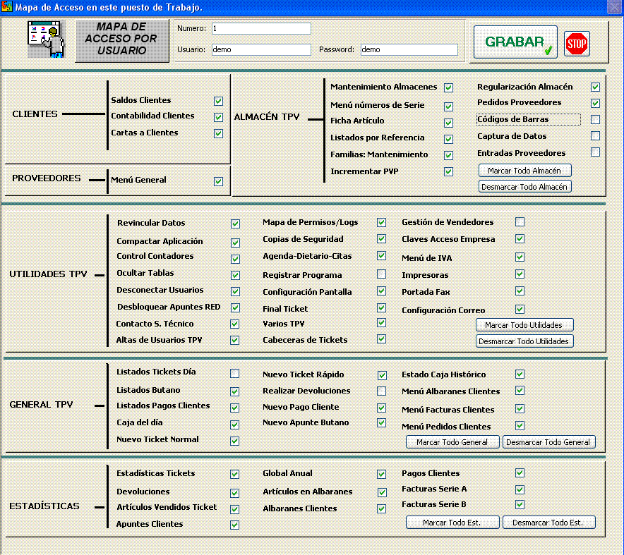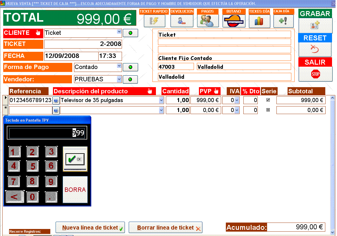 Algunas Capturas de Pantalla TPV.