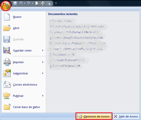 | En la ventana que se abre pulsaremos en Opciones de Access (o Excel , Word, etc) (Access Options) |